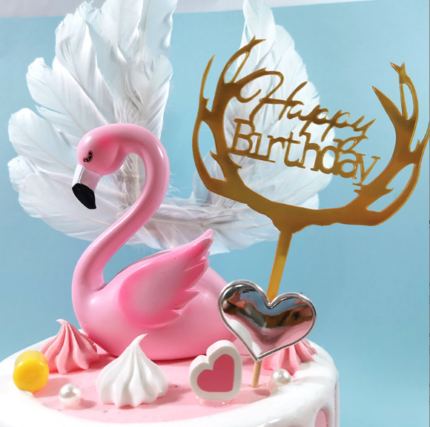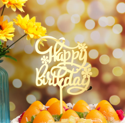 Happy birthday with flower Acrylic Cake Toppers