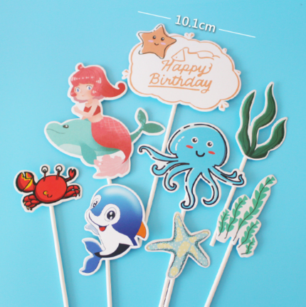 Mermaid sea Theme Cake Topper , 8 Pcs