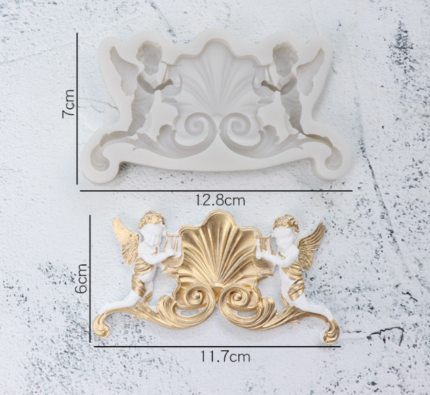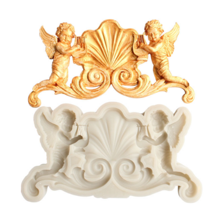 Large 3D two Angel with wings vintage silicone mould