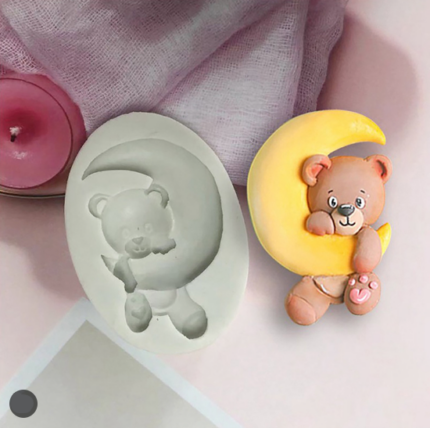 Cute Teddy Bear with Moon silicone mould style 2
