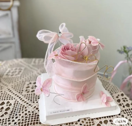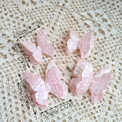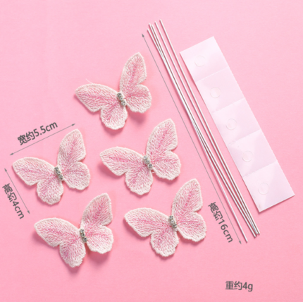 5 pcs fabric light pink studded butterfly topper with floral wires