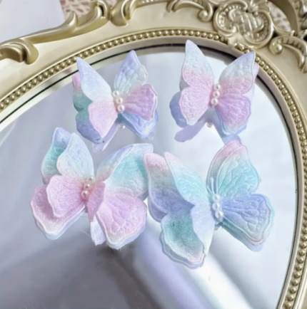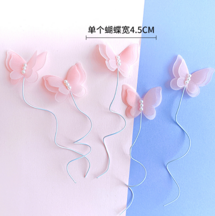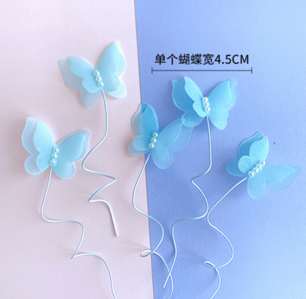 5 pcs fabric pearl studded butterfly topper with floral wires