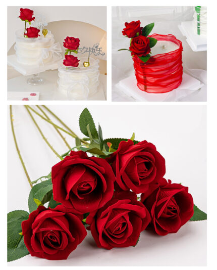 1 pcs Red artificial flower cake topper