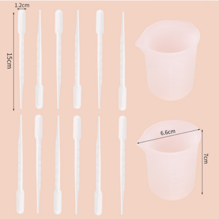 Reusable Mixing Cups Tools Kit, 2pcs Silicone Mixing Cups Measuring Cups 100ml 12pcs Dropper Mixing Stick for soaps, resins, candle, wax etc