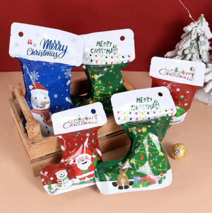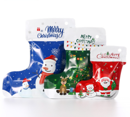 1 pcs Smell Proof Christmas Theme Sock Shape Self-sealing Ziplock Pouch