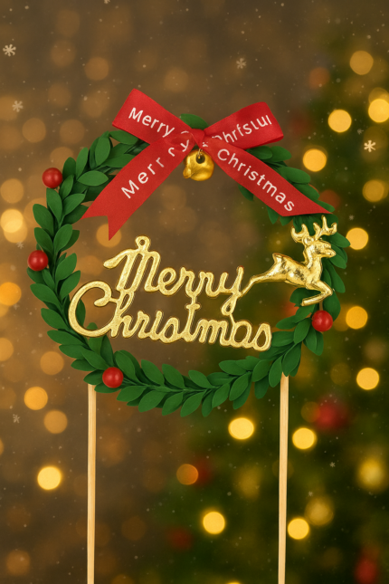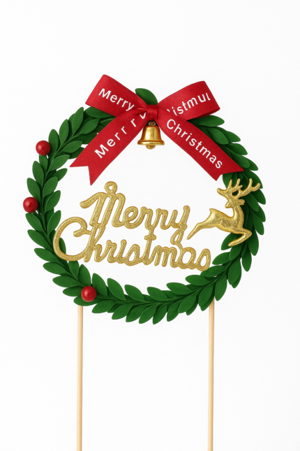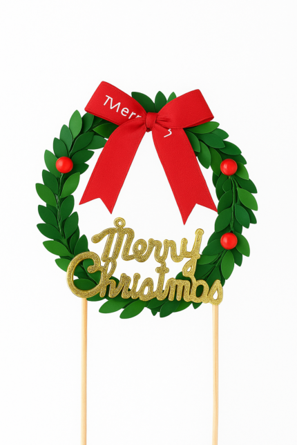 1 pcs Large Garland theme Merry Christmas Cake Topper style 1
