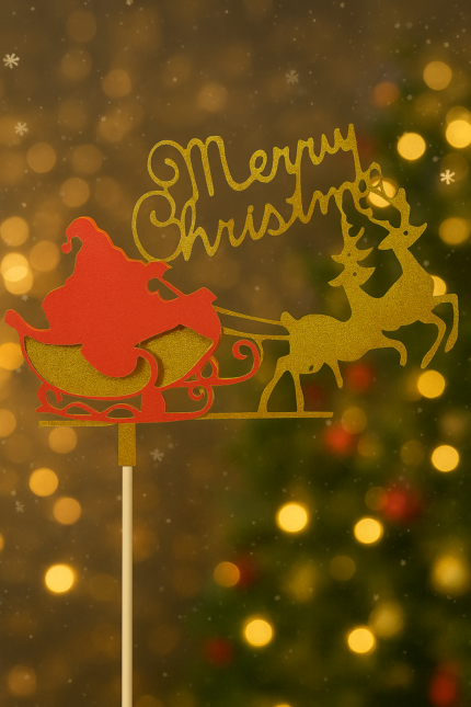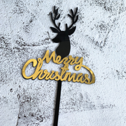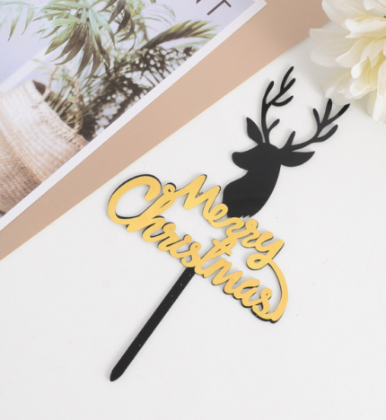 1 pcs Black and Gold Merry Christmas Reindeer theme acrylic cake topper