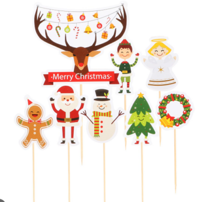 8 pcs Christmas theme cake Cupcake topper set style 31