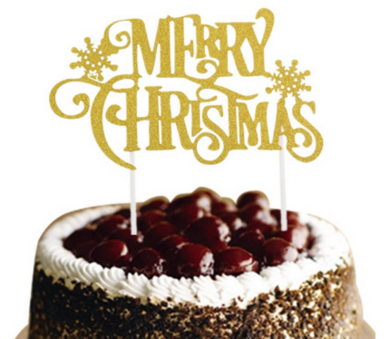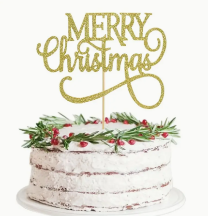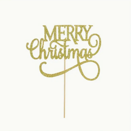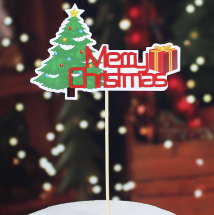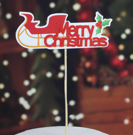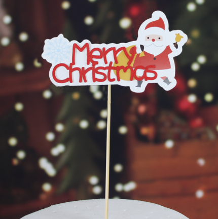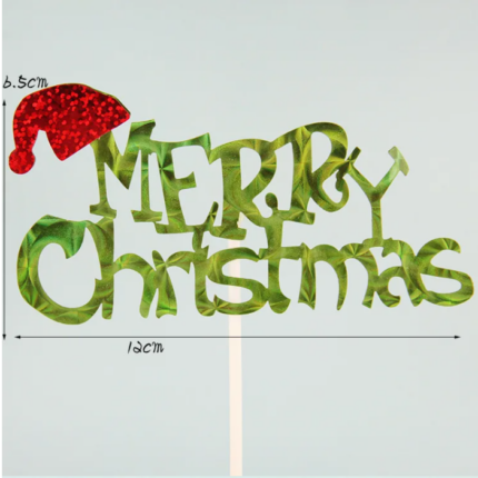1 pcs Green Santa Merry Christmas with bell cake topper