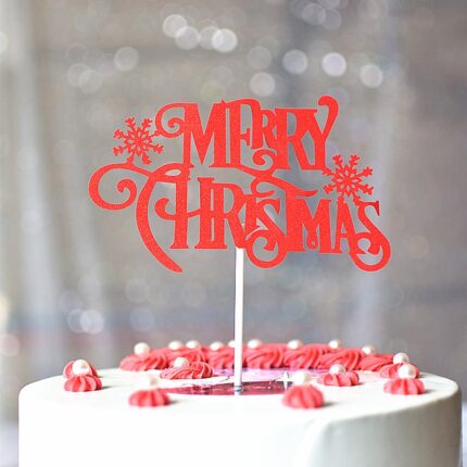 1 pcs Red Merry Christmas with Christmas acrylic cake topper