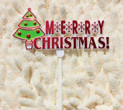 2 pcs Merry Christmas with tree cake topper