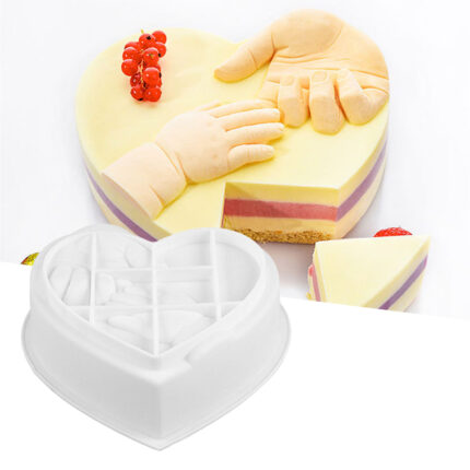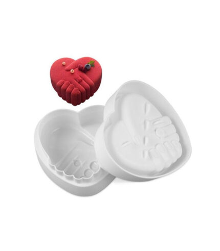 Parents holding baby hand heart shaped mousse cake mould entremet mould
