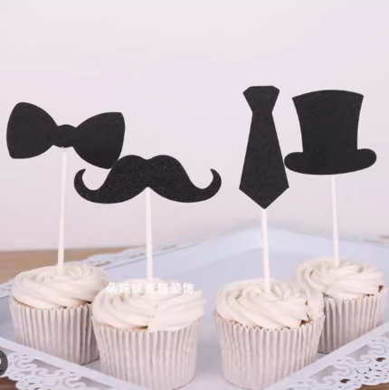 4 pcs Hat Tie Bow and mustache cake topper set