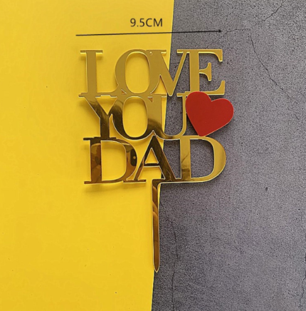 Gold double acrylic Love you dad with Red heart cake topper