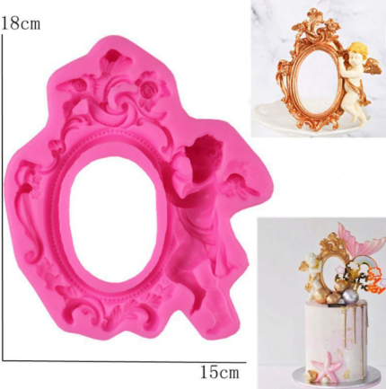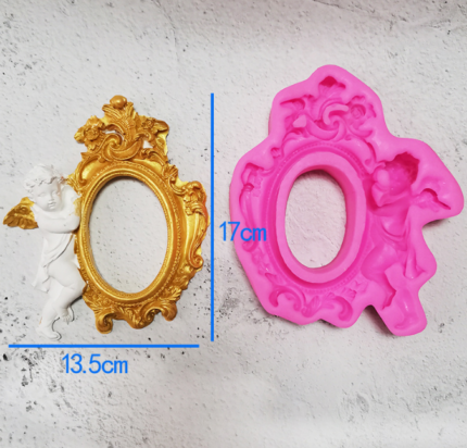 Large vintage classic oval frame with angel silicone mould