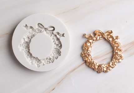 Floral circle frame with bow silicone mould