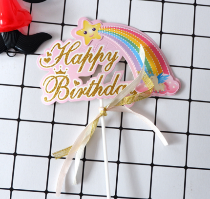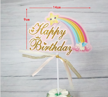 1 pcs Happy birthday rainbow theme cake topper