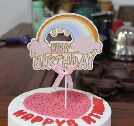 1 pcs pink happy birthday with rainbow theme cake topper