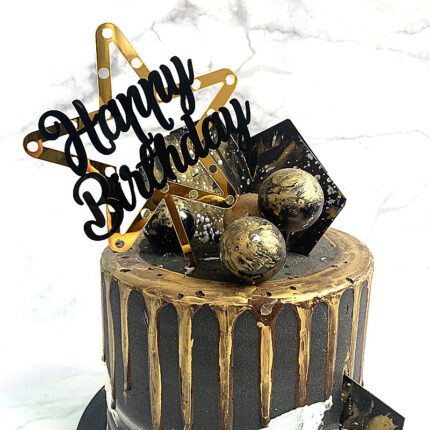 Golden star with black happy birthday Acrylic Cake Toppers