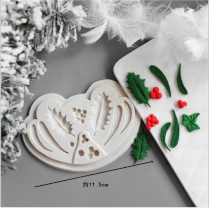 Holly berry leaf christmas silicone mould