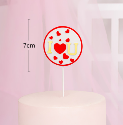 1 pcs round I love you with red heart cake topper