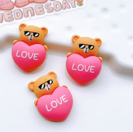 3 pcs fabric red heart love topper