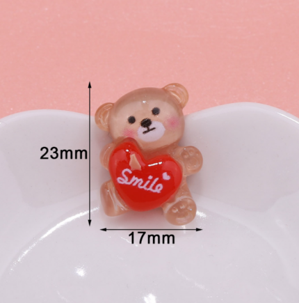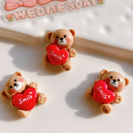 3 pcs Small teddy holding red heart cake topper set