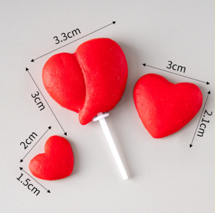 3 pcs Red 3d heart cake topper