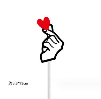 2 pcs Finger crossed with holding heart cake topper set