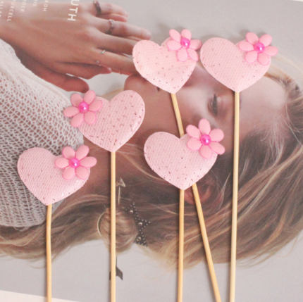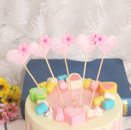 5 pcs pink heart cake topper