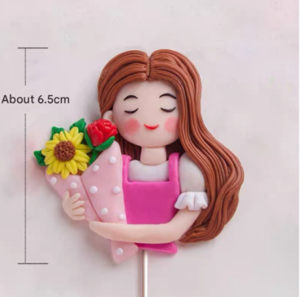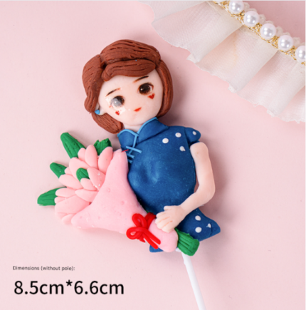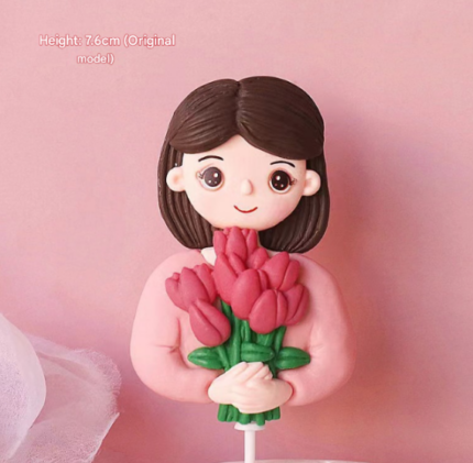 1 pcs Lady Mom holding Bouquet flower cake topper Style 3
