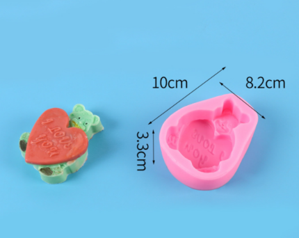 Teddy Bear holding heart i love you silicone mould