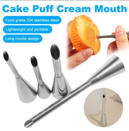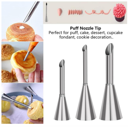 Cream Puff Filling Tip,Eclair Piping Tip,Long Puff Nozzle Tip Decorating Tool for Donuts,Cupcakes,Pastry,3 Pcs