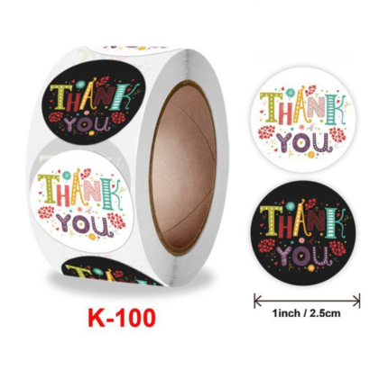 2 Different Thank You Stickers Roll 1 Inch diameter 500 sticker roll