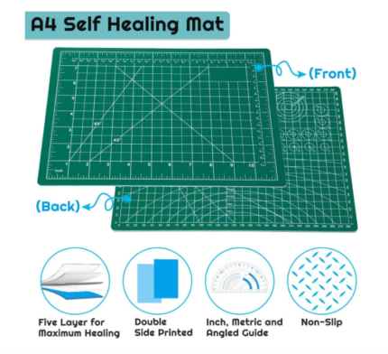 Self Healing 3-Ply Double Sided Durable Non-Slip PVC Cutting Mat Great for Scrapbooking, Quilting, Sewing and all Arts & Crafts Projects – A4 Size