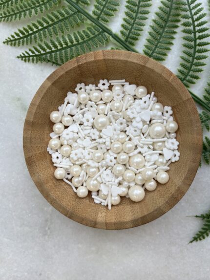 Shimmery White Pearl and Flower Edible Sprinkler 100gm