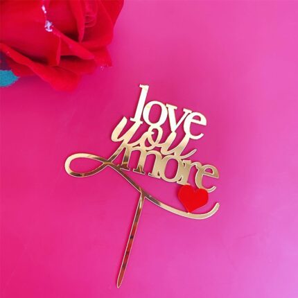 1 pcs Love you more with red heart cake topper