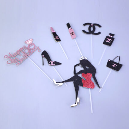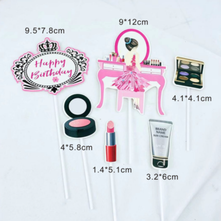 Happy birthday Girls Makeup Branded theme Cake Topper set