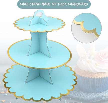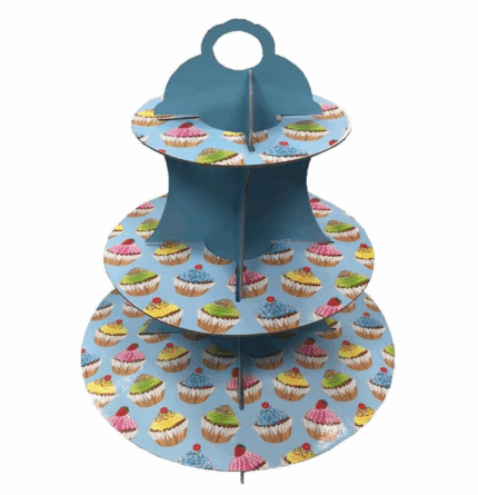 3 Tiers Cupcake Stand Cardboard Cake Holder Cupcake stand ( Blue Cupcake printed theme)