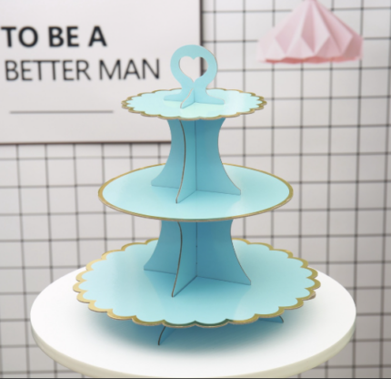 3 Tiers Cupcake Stand Cardboard Cake Holder Cupcake stand ( Blue)