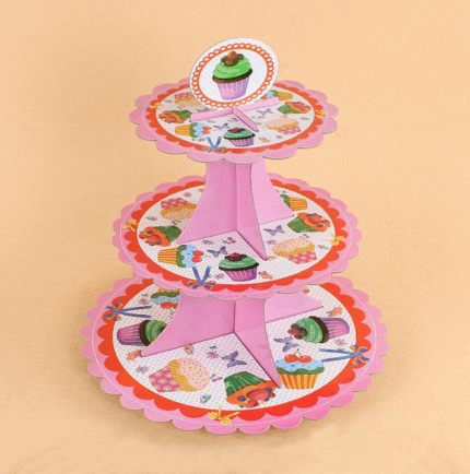 3 Tiers Cupcake Stand Cardboard Cake Holder Cupcake stand ( Pink Cupcake printed theme)