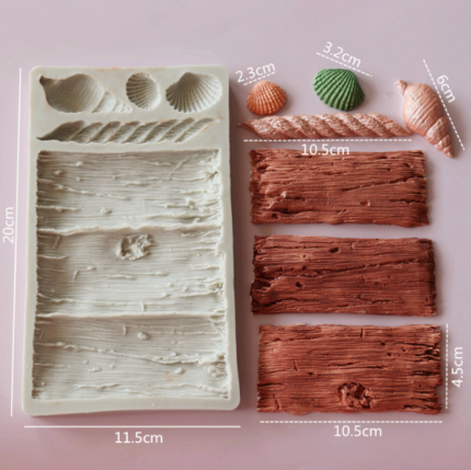 Wooden Tree Bark Cake Silicone Mould with 3 Types of Shell Shapes, Embossed Printing Moulds Made of Silicone mould