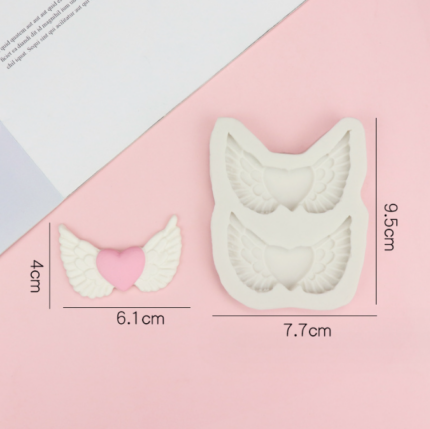 2 cavity heart wings silicone mould