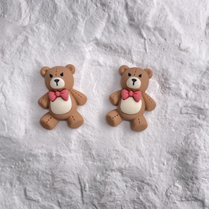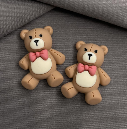 3 Pcs Cute Teddy Bear with Pink Bow Miniature toy topper