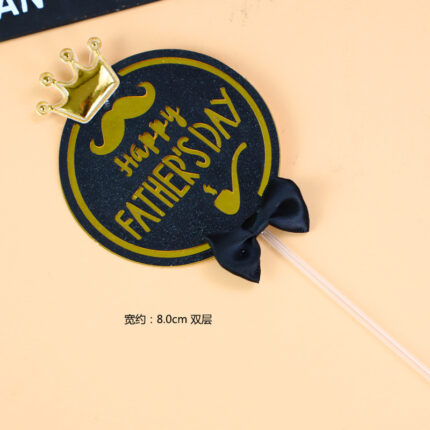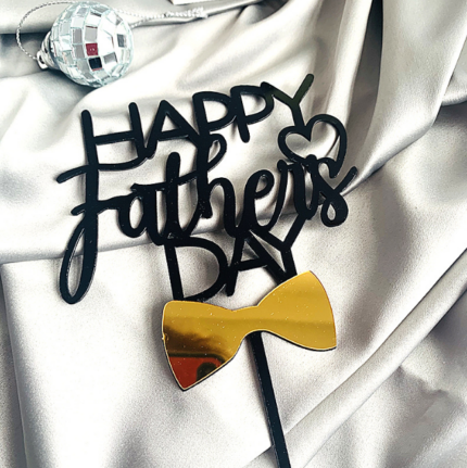 Happy Fathers day with Golden Bow cake topper Style 8 (Black)
