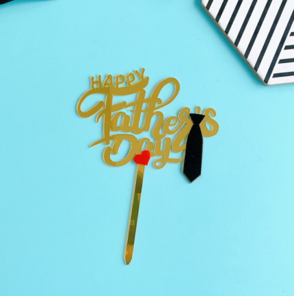 Happy fathers day with tie and heart acrylic cake topper