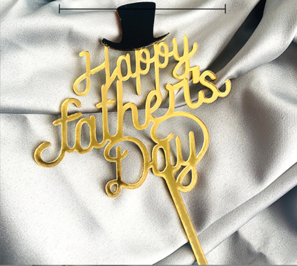 Happy Fathers day with Golden Bow cake topper Style 9 (Gold )