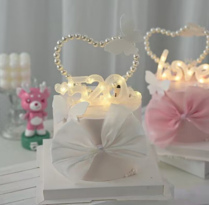 1 pcs pearl heart shaped cake topper