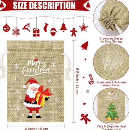 5 pcs Jute Christmas theme Jute Gift pouch STYLE 1 (10 X 14 cm)