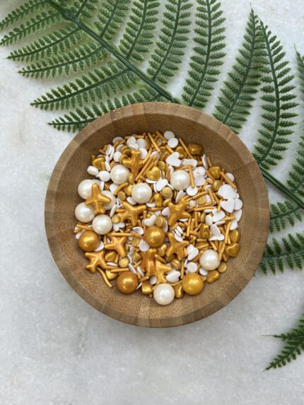 Confetti , jimmies, pearl golden glossy balls shape Sprinklers 100gm